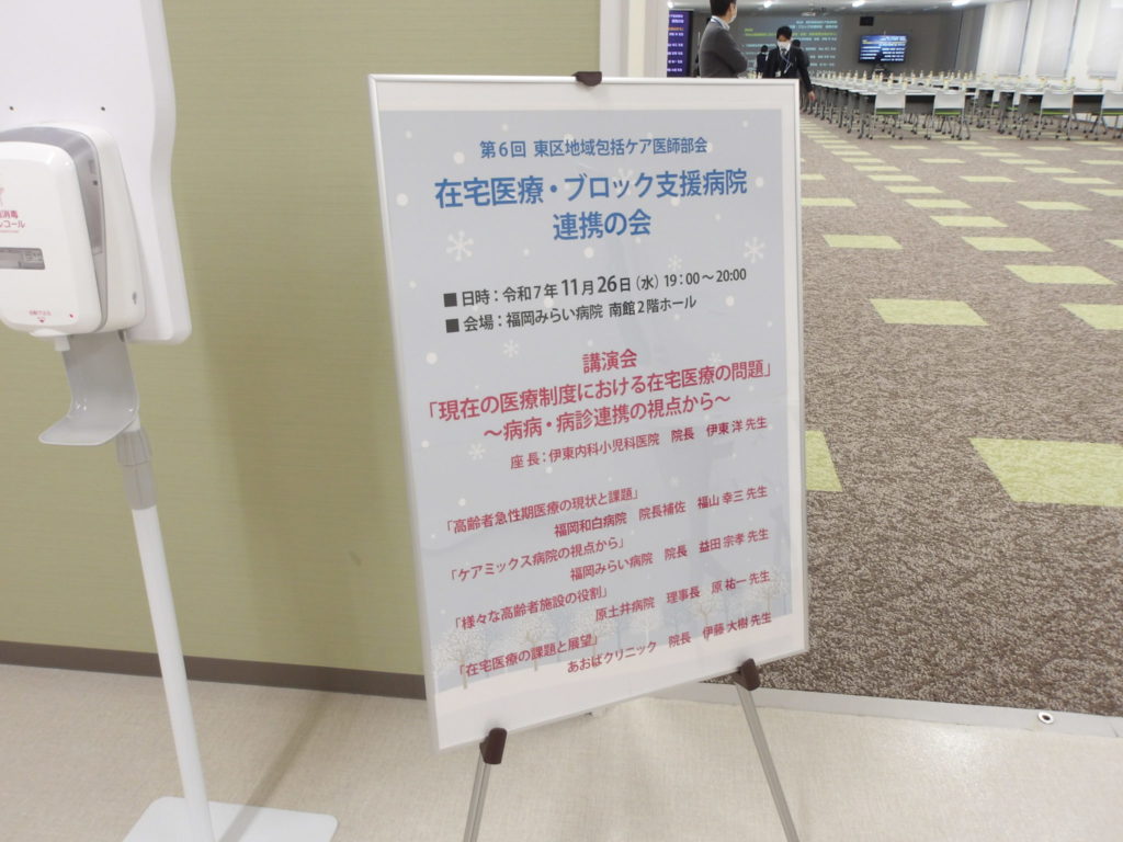11/26(水)、福岡みらい病院 南館2Fホールにて「第6回 東区地域包括ケア医師部会 在宅医療・ブロック支援病院 連携の会」を開催いたしました。